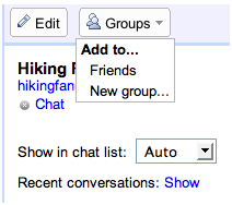 After naming your group, browse for contacts you want to add to it. You can find them by clicking "All Contacts" or by searching by name or email address. Once you locate the contact you'd like to add to your group, click on the contact name, and select the "Groups" drop down menu in the right-most pane. You can add any contact to a group this way -- or make impromptu new groups. (You can also add people to groups by clicking a group name and then typing email addresses or names in the search box at the bottom of the middle pane).