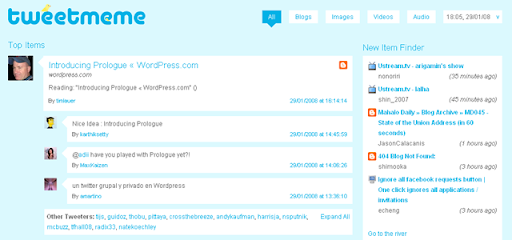 Tweetmeme is a new service that watches what is going on within twitter and picks up anyone posting links to content. We then track how many other mentions of the same content are made (and how influential they are.) and present them in a simple format.