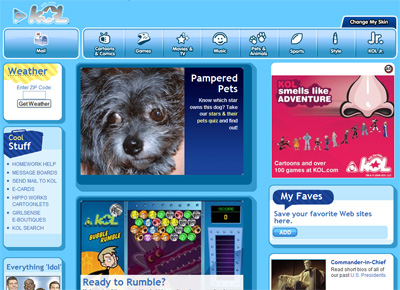 In addition to a variety of skin choices to personalize their KOL pages, users can create their own KOL email address and store their favorite Web sites. KOL offers more than 100 online, kid-friendly games, music videos and artist information, movie and TV features, sports photos as well as celebrity style galleries and online cartoons – all targeted at kids ages 2-12