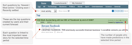 Hubdub is all about letting you actively participate in the day’s news, following today’s events, predicting their outcomes and competing with other users to find out who the real news junkies are!