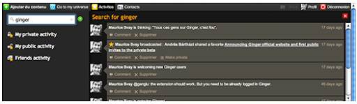 2. Search your activities stream : New way to explore your activities with a search engine. Simply type a keyword and all the matching events will show up. It's now easy to find a link or a message again.