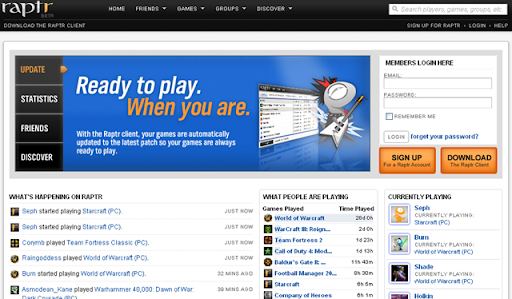 Raptr is a Silicon Valley based startup that has built a revolutionary social games platform to change the way people play and discover games they like and share their gaming experiences with friends. Raptr makes gaming more fun and social by automatically sharing your gaming achievements and stats with friends while putting an end to the frustrating process of finding and downloading game patches and updates.