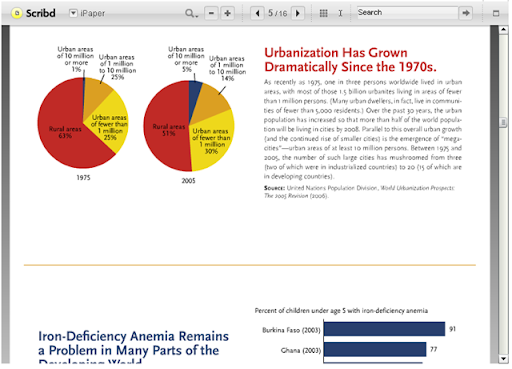 Scribd, the leading site for sharing documents on the Internet with over 10 billion words of text uploaded, today announced iPaper, a new document format built for the Web. iPaper is the first full-featured Web-based document viewer and is more like a YouTube video than it is like a PDF. Through a Flash widget that streams documents from Scribd's servers, documents can be viewed directly in a browser without software downloads.