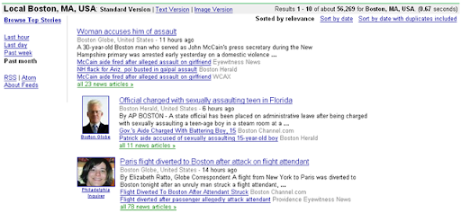You can see an example with the latest news from Boston, MA, USA: